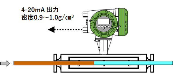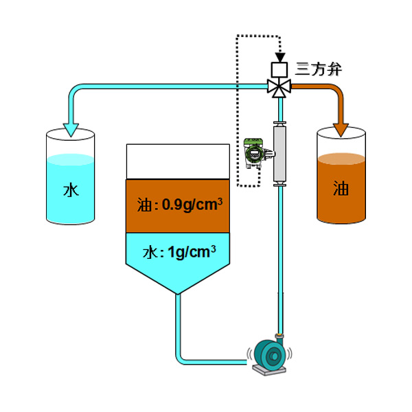 同一タンク内の水と油を液体の密度監視と 三方弁の切り替えで個別に分ける!