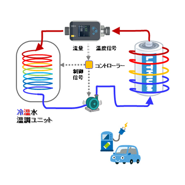 内燃機関エンジン開発の冷却水温や 電気自動車用Liバッテリー開発の冷温水温度制御のデータ収集