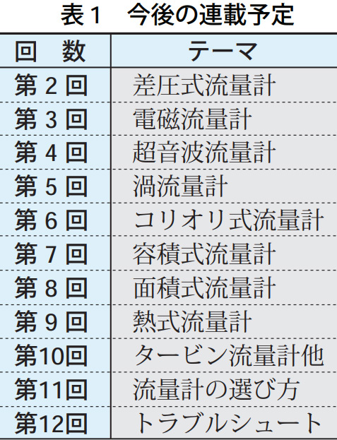 よってこの連載の狙いは、代表的な流量計の解説と、使用上の注意とします。その中で、信号変換器との関わりにも触れたいと思います。